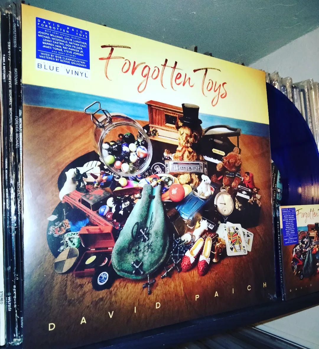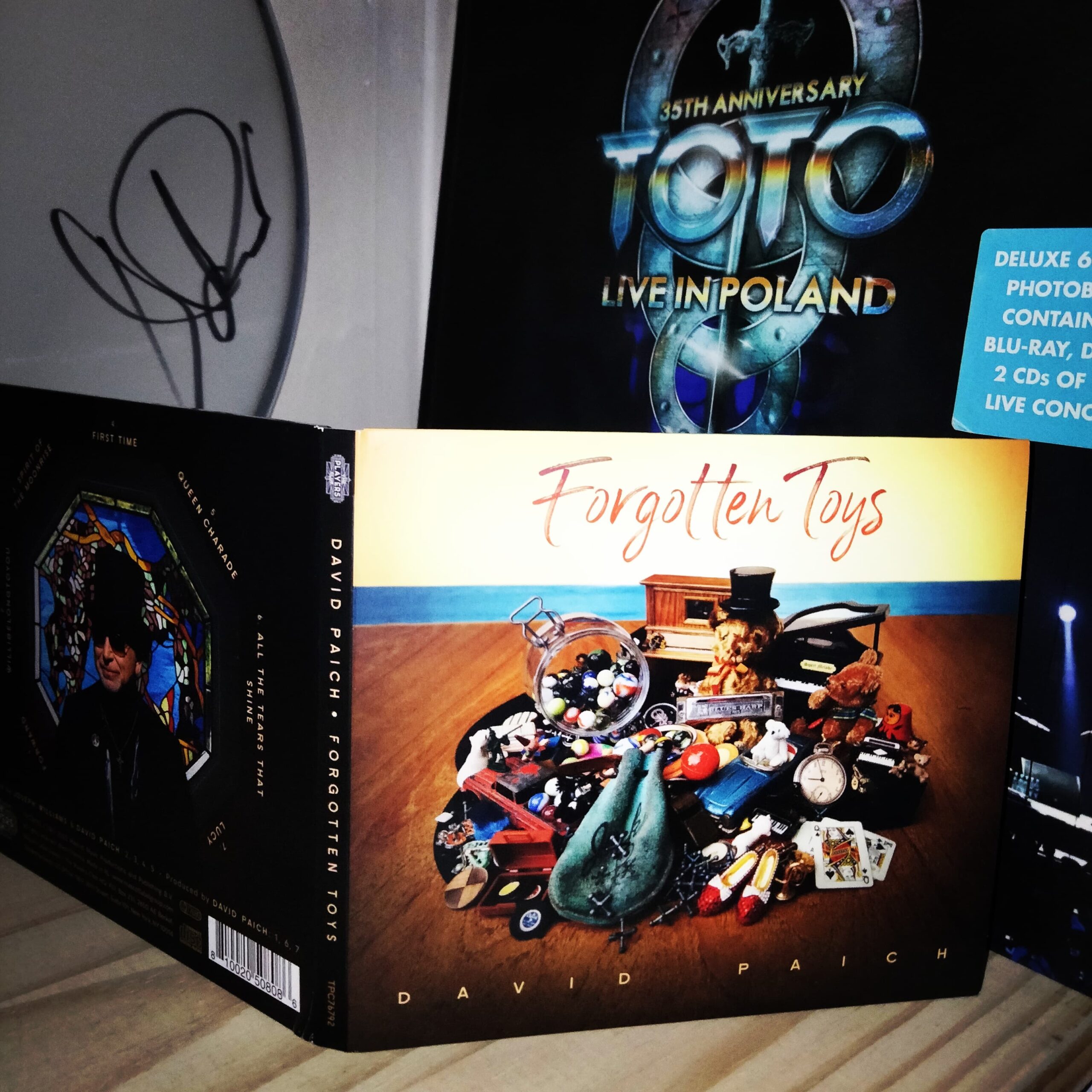 Voilà pourquoi Forgotten Toys est une belle surprise que je n’attendais pas. L’artiste démontre que ce souhait ne plus monter dans un bus lors d’une tournée n’exprime pas un retrait définitif de la musique. David Paich démontre que son envie est intacte et qu’il a encore des choses à partager après plus de 45 ans de carrière. Il n’a plus rien à nous prouver et dans cette optique, on ne peut que déguster l’ensemble comme un bonus fort agréable. Il nous ouvre ici son cœur en même temps que son coffre rempli de pépites. Voilà pourquoi j’ai attendu de recevoir l’édition vinyle et le CD afin de découvrir ces nouveaux titres, résistant à quelques vidéos YouTube sous forme de teasers, non sans un brin de nostalgie liée à une époque révolue. Le fait d’aimer Toto et David Paich nous rappelle ces instants de première écoute d’un disque avec l’objet entre nos mains, avec un livret et des crédits à dévorer. C’est un moment particulier, celle d’une passion qu’on définirait comme celle d’un puriste. Le visuel de la pochette réalisée par Lorraine Paich, l’épouse dévouée du maestro, va dans ce sens. De nombreux objets liés à la vie d’adulte comme ceux liés à Toto accompagnent cet ours en peluche offert par ses parents. Symboliquement, ce compagnon d’enfance porte un chapeau et on croirait qu’il va se mettre au piano.